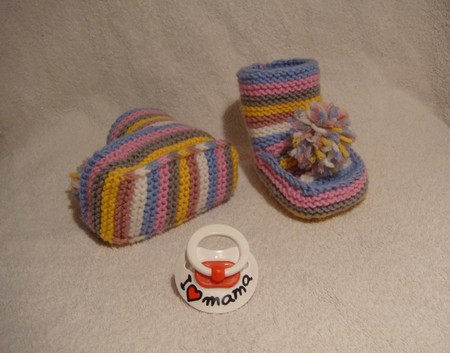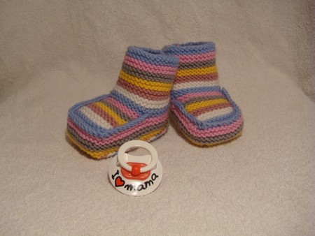 Связаны на спицах (на 2-х, не на 4-х, как носки, но сзади шов), платочной вязкой (все петли - лицевые). Напишу схемку подробную попозже.
