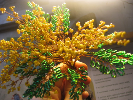 Бисер. Бисероплетение. Украшения из бисера.Плету мимозку. еще не оформила ее, просто веточки...