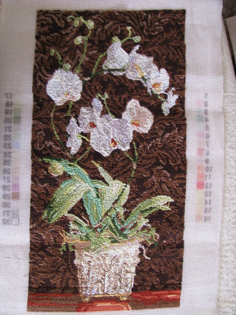 Это гобелен. Больше никогда вышивать гобелен не буду, только счетный крест!!! Медленнее получатся раза в три.