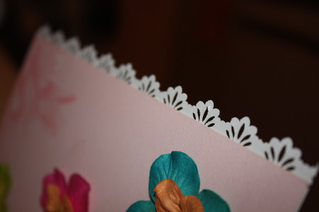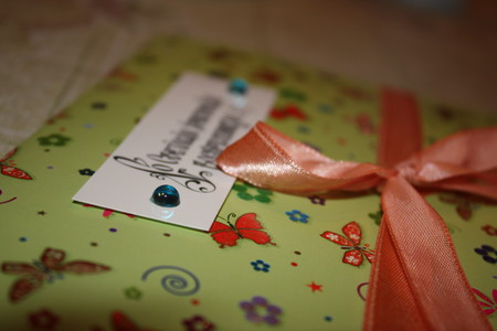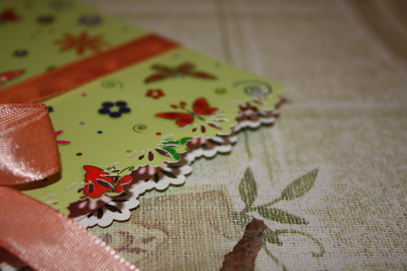 Спасибо)) Да, насквозь. На моей открытке видно, что розовая (внутренняя сторона) приклеена к салатовому листу бумаги с бабочками. "Ножки" от брадсов спрятала именно там;) между этими листами.