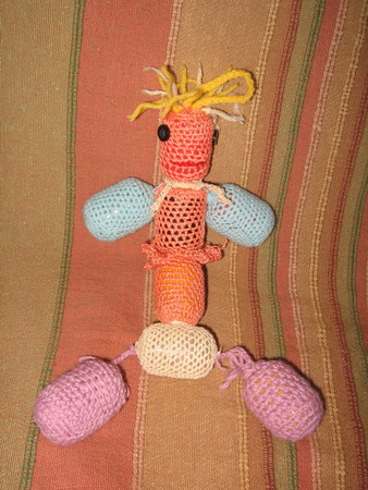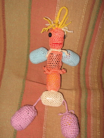 а вообще,на мой взгляд клевый человечище))))ты ему еще пуговок и бусинок попришивай)))
