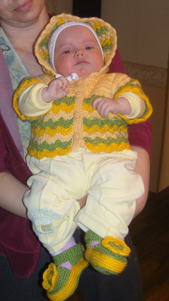 очень все красивое, особенно мне понравилась разноцветная кофточка с пинетками и ШАРФ!!!!