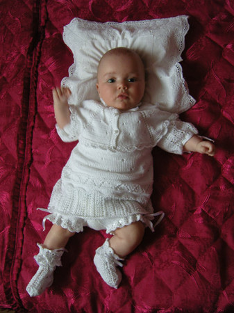 если кто помнит связанный бабушкой крестильный комплект(вязали из головы(спицы))