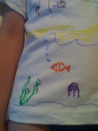 Роспись по ткани, батикДевочки, не судите строго - рисовал мой сынишка 6-ти лет, фломастерами))) Море радости и гордости)