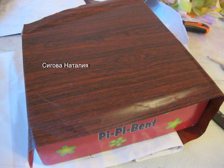 Вырезав, приступаем к наклеиванию пленки на коробку