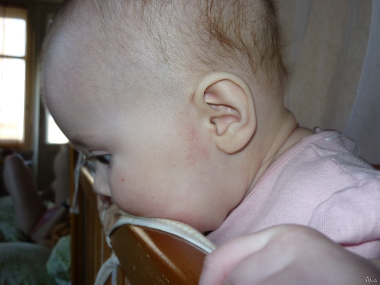 тут уже смазано мазью, поэтому блестит. последняя фотка это на спине потничка, раньше аллергичным местом это никогда не было. серые пятна - это косяки на камере телефона, а не у Маши.
