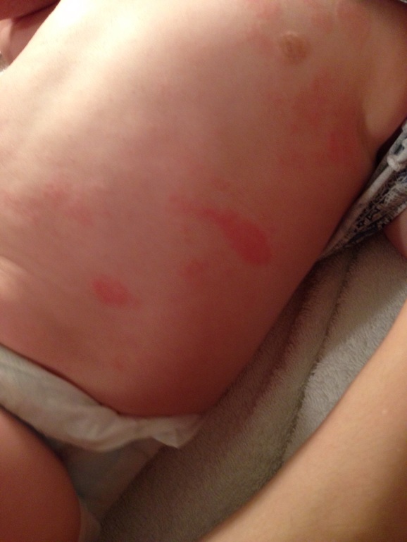 очень похоже на аллергию на молоко...если есть расчесы, то эмолиум лучше не надо - он создает пленочку как бы на коже и ухудшает заживление...
