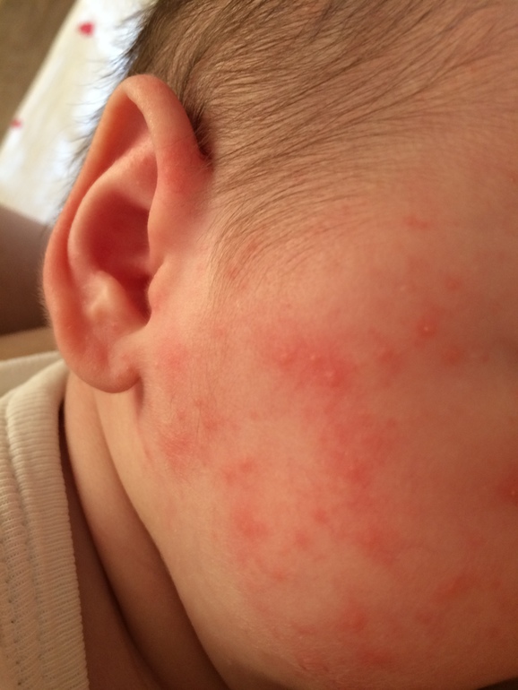 у нас было такое акне, прошло само в 2 месяца где-то или 2,5. И очень важно, особенно если потеет, температура около 20 и влажность 50-60 процентов.