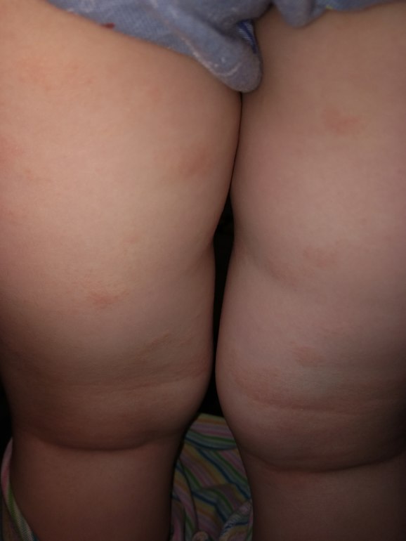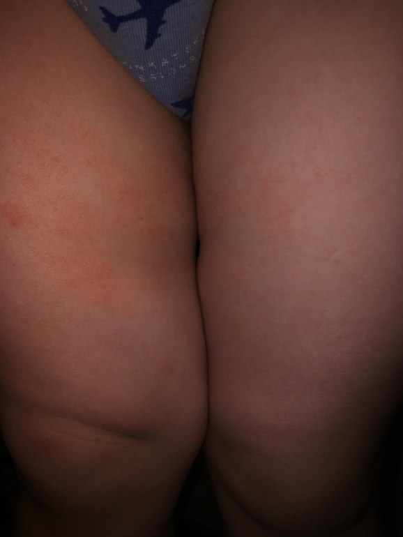 АД (2-3года)Началось все под коленями. Мазала Бепантеном,вроде прошло,но потом посыпало спереди на внутренней стороне ног.