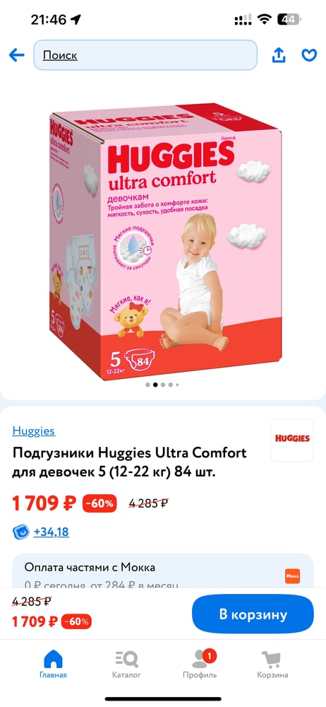 Предлагаю подгузники-трусики для девочек Huggies ultra comfort 3 6-11кг 58шт.