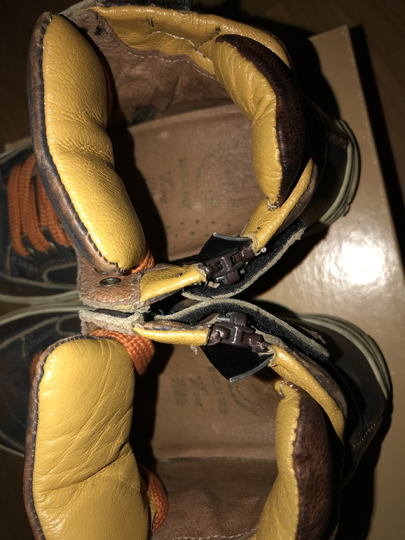 Кожа на коже. Очень удобные. Застегиваются на молнию с боку + шнурки для регулировки полноты и подъема Язычек сзади очень выручает в плане одевания, держась за него ребёнок не заминает пятку, плюс он мягкий и ногу в районе сухожилий не натирает.