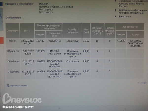вам ещё повезло... у нас на почте и не такие чудеса происходят, особенно под новый год! мне девочка заказное письмо отправляла, так оно ей вернулось, по той причине, что "таклого адреса не существует"! (имелся в виду мой адрес). хотя на конверте адрес был указан правильно.