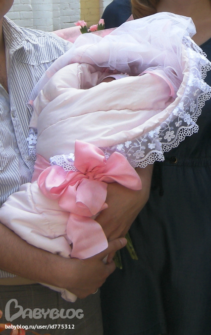 Одеяло+вуаль+3 бантика разной степени розовости с надписями. Пойдет на весну-прохладное лето. 1 слой синтепона.