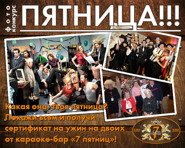 Какая она, твоя пятница? Покажи всем и получи приз - сертификат на ужин на двоих от караоке-бара "7 пятниц"! Собери под фото больше всего "классов", и мы вручим тебе приз зрительских симпатий - подушку с любым твоим принтом! Итоги конкурса - 15 июня.
