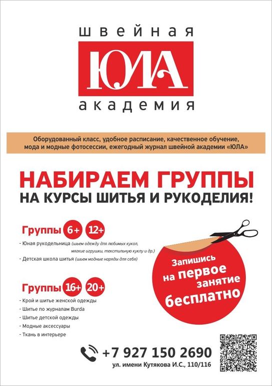 В субботу 14 октября 2017 года в 14:00 и в 16:00 в швейной академии ЮЛА будут проходить бесплатные ознакомительные занятия для всех желающих научиться шить. Приходите! Будет интересно!