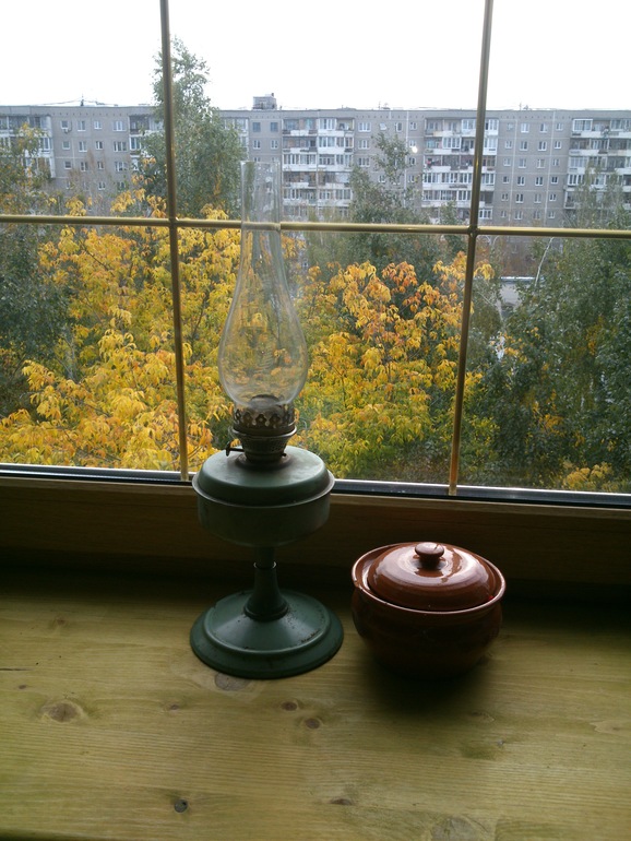 Этим летом в гостях у бабушки увидела лампу -керосинку.Выпросила себе)))Она с удивлением и радостью подарила.