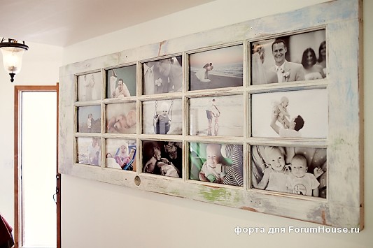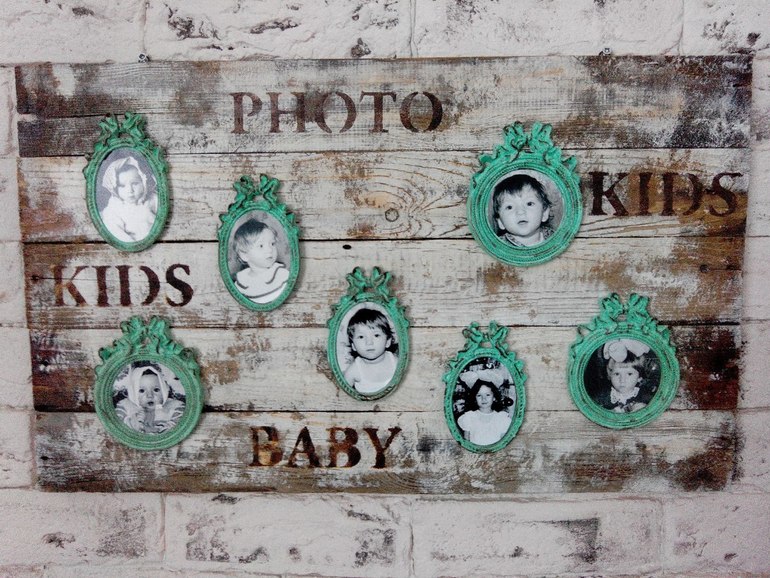 Принесла его домой, разобрала по досочкам , помыла и стала думать. Ничего в голову не приходило, пока на распродаже в одной известной сети я не увидела эти чудесные новогодние подвески. Цена была смешной- 4,9 штука. Принеся домой сокровища я начала творить )). Сколотила доски в полотно, зашкурила, где надо -пробрашировала, покрасила белой краской. Потом отодрала от подвесок белочек и лосиков, покрасила их в желаемый цвет, подстарила. Нашла старые фотографии, отсканировала, вырезала и наклеила. Сделала отпечатки через трафареты, что бы оживить композицию. И вот что получилось.