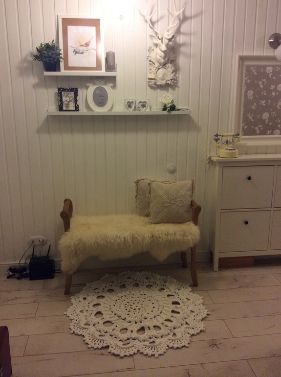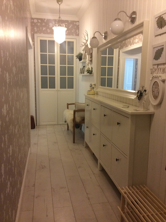 Когда ремонт в кухне был практически закончен, встал вопрос ребром об освещении ). Я долго и мучительно обходила магазины , но все, что мне нравилось, стоило запредельных денег. Тогда я вспомнила, что как то, на просторах интернета, видела люстру из друшлага ). Правда люстра та была с одним плафоном, а мне, на мои 17 квм, этого было маловато. Тогда было решено повторить увиденное в тройном размере )). В Икея были закуплены подвесы для 3 ламп, 3 друшлага ,3 лампы и белая морилка, в строительном магазине-крюки и цепи. Доску покрасила белой морилкой. Красила 3 раза, но она почему-то так и не пожелала стать белой. Поэтому я согласилась с ее желанием, и оставила ее цвета дерева )).У друшлагов в центре просверлила отверстия для патронов, а их самих закрепила на дощатом основании шурупами,соединила конструкцию с проводами. К краям доски прикрутила крюки, зацепила концы цепи. На потолке ,на нужном расстоянии то же разместила крюки, и повесила свою красоту.Теперь в кухне нас радует своим светом моя авторская люстра.