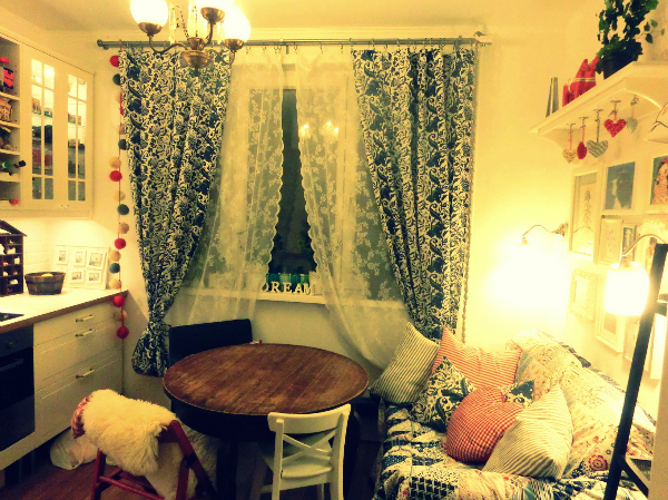 Наша кухня, поменяла занавески, жду весну.