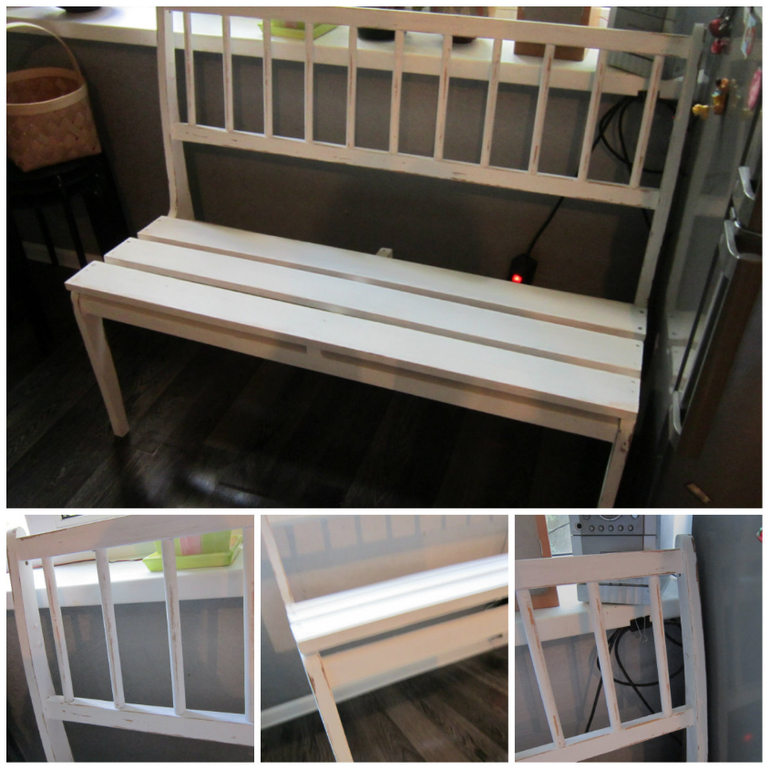 1.Вот лавочка..она родилась из боковинок стульев, боковой стенки от старой кроватки и 3-х НОВЫХ)))досок....по-моему очень даже сканди получилось))))