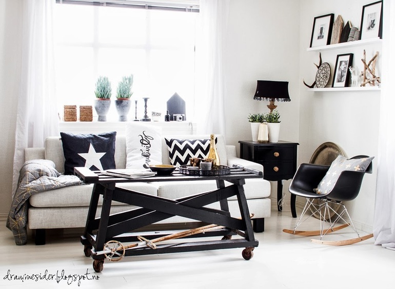 В гостях у...Всеми горячо-любимый монохром от draume***sider. Никогда-никогда не забывайте добавить зелень в монохром. А еще идеально с черно-белым смотрится цвет "береза" будь-то плетеная корзина, полка, или деревянный сундук. В этом доме все по правилам, наслаждайтесь: