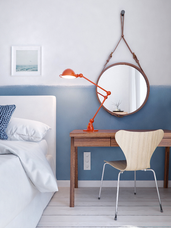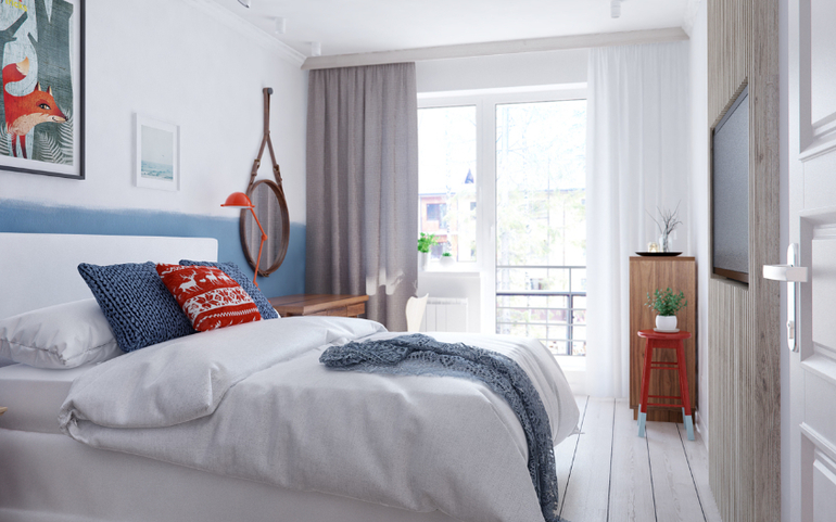 Общее цветовое решение и использование одних и тех же материалов в разных зонах объединяют пространство в одно целое. Отдельным жилым помещением в этой квартире является только спальня - настоящее море спокойствия.