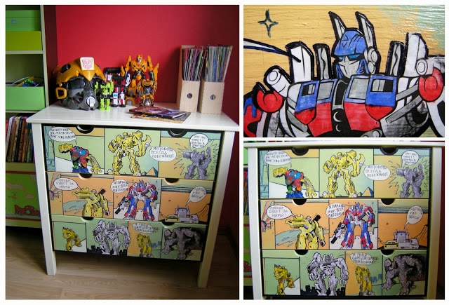 Расписывает комоды. С трансформерами - для старшего сына Мирона