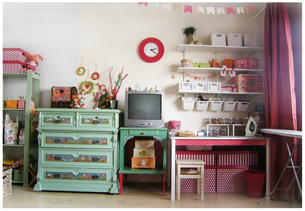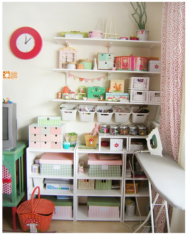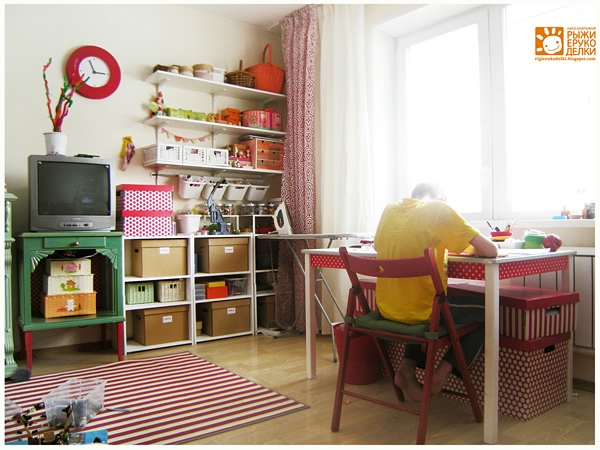 Катя в своем блоге пишет, что творческий уголок находится в гостинной и его эстетический вид для нее очень важен.