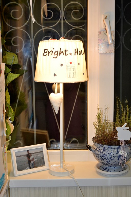 на кухонной лампе удачно вписался мой чехол. Абажуры самые обычные. Просто и лаконично. Теперь до наступления зимы у меня появилось две новых настольных лампы, а в новый год абажуры заменят на время звезды)).