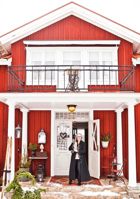 В гостях у...В красном доме с видом на Siljan живет Ева Оке и кошка Alfie. На Рождество он наполнен свечами, pepparkaksälgar - коричными печеньями и ароматом яблочного сока с кальвадосом.