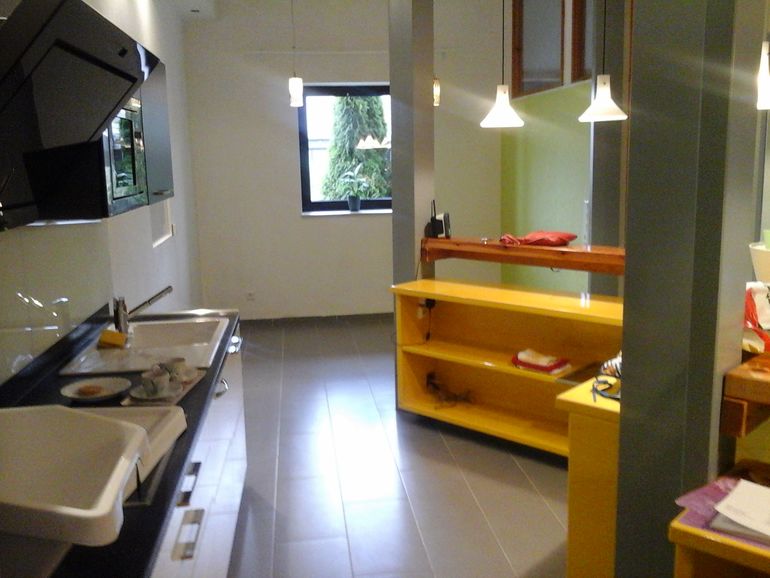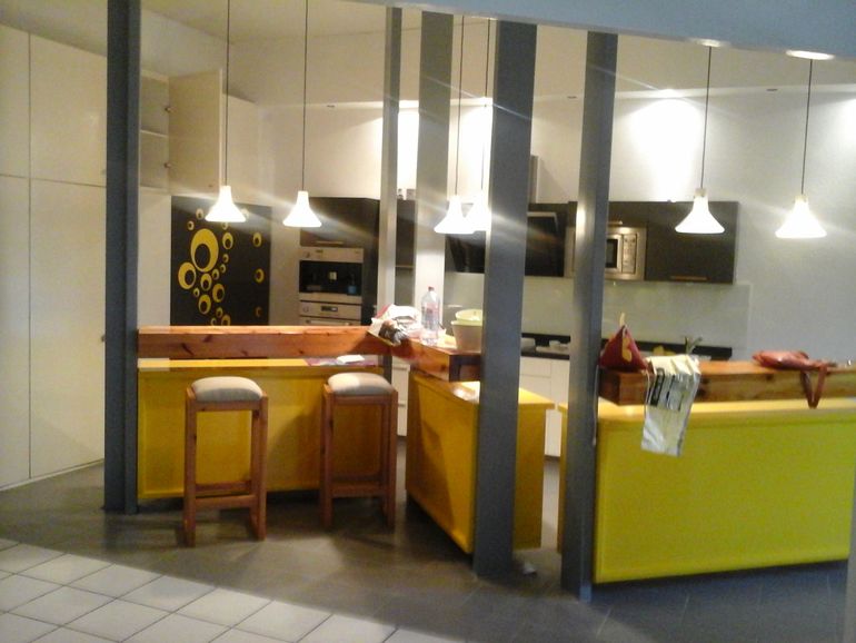 Итак - сейчас не далее как с 1 апреля мы въехали в 200 кв дом. Большое крыльцо. Сада нет , только хозяйский и не ухоженный. Дом в двух урранях. Между кухеей-бюро-прихожей-столовой (открытая зона) и гостиной-спальня-детская есть три широкие с 2 метра ступени .