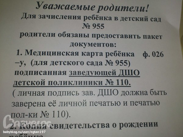 Вопрос про медкарту в сад...