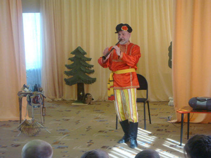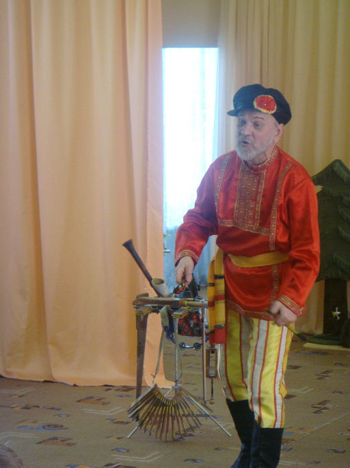 На четвертый день к детям приехал Дед Авдей со своими уникальными народными инструментами. Озорной Дедушка Авдей играл на ложках, гуслях, жалейке, свиреле, трещетке, балалайке и даже на пиле, косе, дровах и многом многом другом! Он не просто играл на всех этих инструментах, но и вовлекал детей в игру и пляски. Было очень весело, дети были в полнейшем восторге, так что если будет возможность пригласите к себе в сад или сходите со своими детьми на эту интерактивную программу.