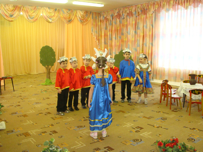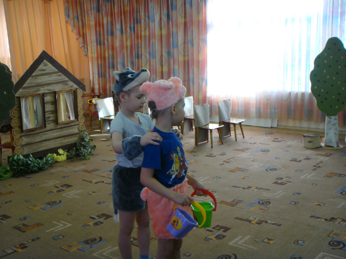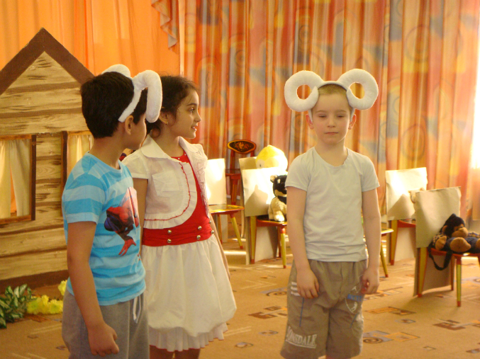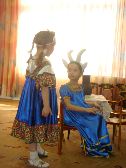 Третий день - "День театрализованной игры". В этот день (помимо кукольных представлений в группах, показанных воспитателями детям) был показ театрализованного представления для детей детьми старшего возраста "Волк и семеро козлят". Девочки! ЭТО надо было видеть! Мало того что костюмы бесподобны, декорации оформлены, НО актеры - это что-то! Дети играли бесподобно! А зрители сидели с открытым ртом. Представление было показано аж 2 раза, второй раз специально для родителей и совсем маленьких детишек. Даже малыши сидели и завороженно смотрели.