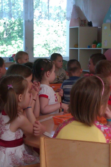 Воспитатель демонстрировала мамашам(коих было 2 шт. вместе со мной, остальным не интересно)) достижения в математике. Счет, формы, размеры,несколько заданий на логику...Из 20 детей активно отвечали человек 5, остальные долго думали, ловили мух, подсматривали за другими, чтобы сделать задание(вот из кого точно вырастут списывальщики в школе).Моя красавица немного смущалась присутствия мамы(вот даже не знаю, как с этим бороться..Стоит прийти в сад, как она липнет ко мне,не оторвать..), отвечала, иногда путалась..Зато я со стороны посмотрела, над чем еще надо поработать. Мы дома с ней занимаемся тоже по Петерсон. Поэтому, если дома чего то не добрала, продублируют в саду, для лучшего закрепления материала))).Хотя грех жаловаться, она у меня давно буквы знает, считает до 100, а может и больше(не пробовали), обратный счет, времена года, формы, оттенки цветов и пр..Сама пишет буквы печатные, я с ней не занималась этим, ее инициатива..Уже месяца 3-4, как пишет.. Коряво, конечно, еще..
