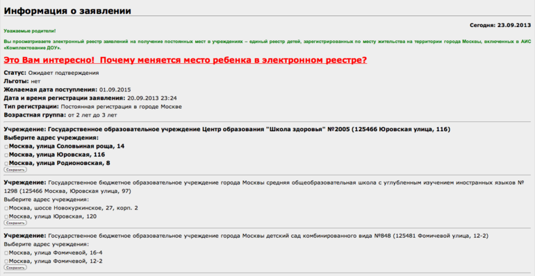 Да, мы зарегистрировались.Я искала в инете, какие сады относятся к имеющимся в списках школам, как раз нашлось по 1 садику на школу. Выбрала оптимальные по расположению и отзывам, а после сохранения заявления он выдал еще одну страницу, я приложила скрин, посмотрите. Т.е. на самом деле там по 2-3 садика на школу, и все с разной локацией, так что на первом этапе выбирать их по приближенности к дому было тратой времени. Как узнать наперед, какой садик от какой школы, я не в курсе.