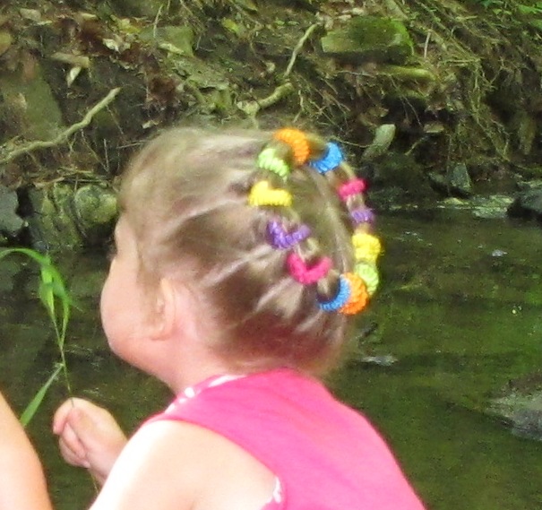У дочки простые косички плохо держатся - много волосенок коротких, выглядит неаккуратно. Поэтому делаю или две французские косички или с резинками: