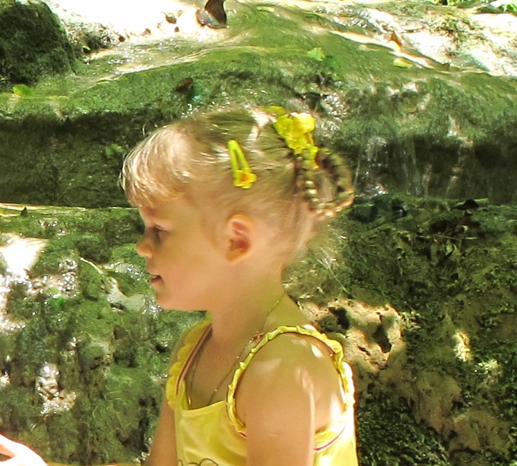 Волосы до пояса, обязательно убираю в косичку (на две пока резинки слишком туго навязывать). Колоски сложные плести пока не удается - любим поваляться в кровати. Поэтому одна коса с двумя резиночками ну или полуколосок.Воспитатели просили хвостики не делать. Забираю с аккуратной прической, воспитатели у нас хорошие