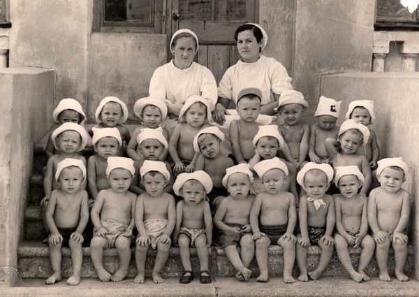 Бабушка моего мужа (вторая слева) много лет проработала детской мед.сестрой. На фото — ясли на даче. Круглые сутки с таким количеством детей! Как справлялись?...