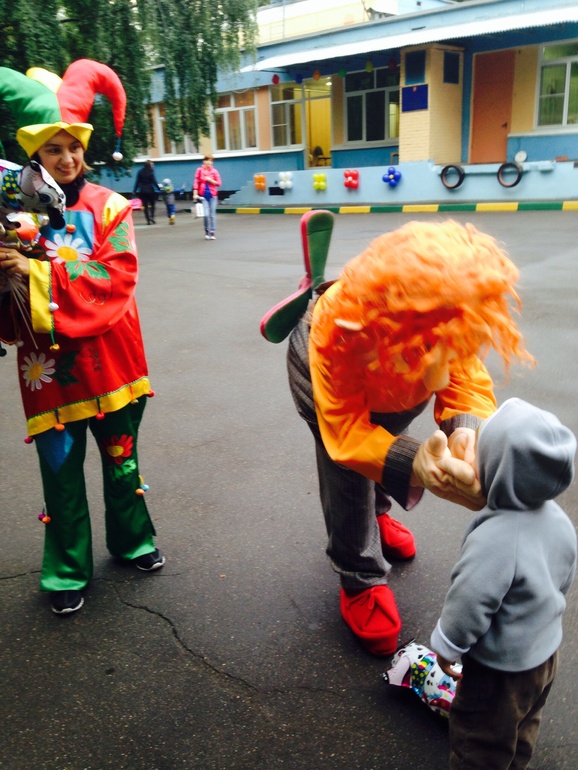 ПотрындетьВот как у нас в ДС сегодня встречали деток! Меня это порадовало:))) в роли оранжевого Карлсона психолог ДС:))) а мы на 2 часа в ясли сходили. Паша плакал и упирался (в Гкп ни разу такого не было!), но уходить не хотел ни в какую! Играть!-и назад в группу. Посмотрим, что завтра будет. А я успела в бассейн сходить, поплавать! Слава садику:)))