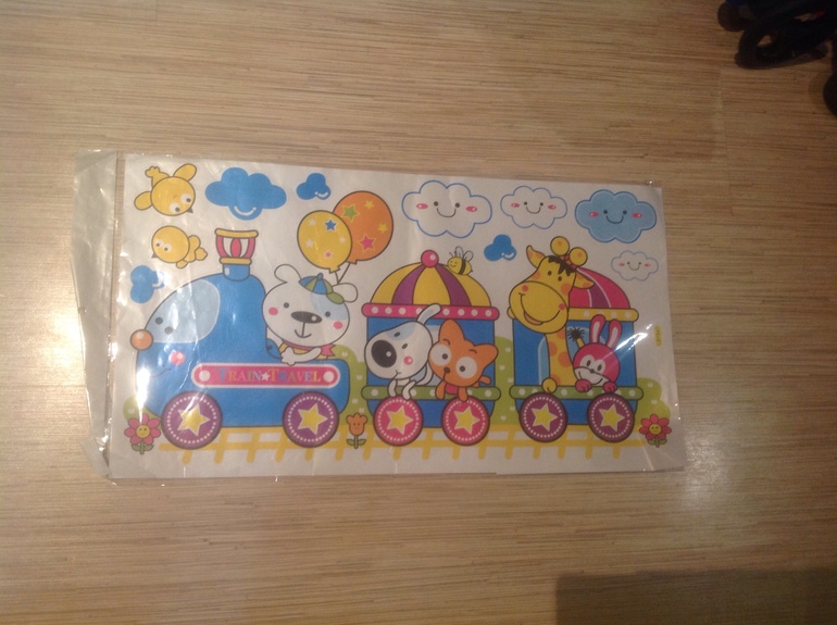 У нас такой паровозик на стену приклеен)) дочке нравится)) покупала такую наклейку в фикс прайсе)) держится хорошо, но второй раз приклеить не получится, наклейка одноразовая