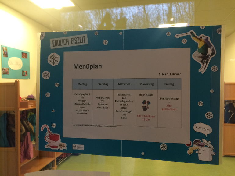 Именно наш садик вегетарианский. В каждом саду здесь своя специфика... Раз в неделю дают рыбку. Ниже привожу перевод меню.