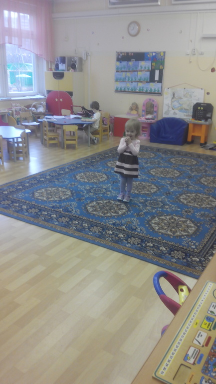 Адаптация ребенка в детском саду.Ну это громко сказано день,всего-то 1 час Юля была там, так сказали водить целую неделю ,чтобы не переутомлялась. Ну если по порядку 1 мес назад дали место в ГКП,прошли медкомиссию за 2 дня и заболели все дети поочередно,в итоге только сегодня пошли.Ох я не знаю кому тяжелее,мне или нет.Не в плане оставлять там,а в том что я так рано не встаю(кормление Богдана не считаю).Ну так вот встала я в 6-45 подогрела с вечера сваренную кашу,подняла Юлю в 6-55 накормила кашей,наудивление ела хорошо,потом умыла,подмыла ее,зубы почистила ,одела.После чего оделась сама и только потом Богдана. Одновременно с этим заплела старшую.Ну так вот вышли в 7-35 пришли в 8-00.Из детей был 1 мальчик.Раздела ее,воспитательница хотела провести ее в группу,так Юля рванула туда сама не стесняясь,подбегала ко всем игрушкам,еле успела сфоткать на телефон,так что за качество извиняюсь.