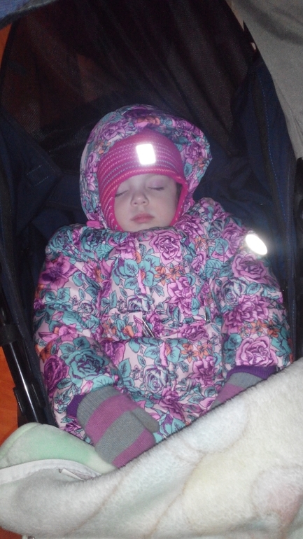 После пошли погуляли в парке минут 30 и пошли домой,не дойдя до дома Юля уснула,и проспала в коляске дома часа так 1,5