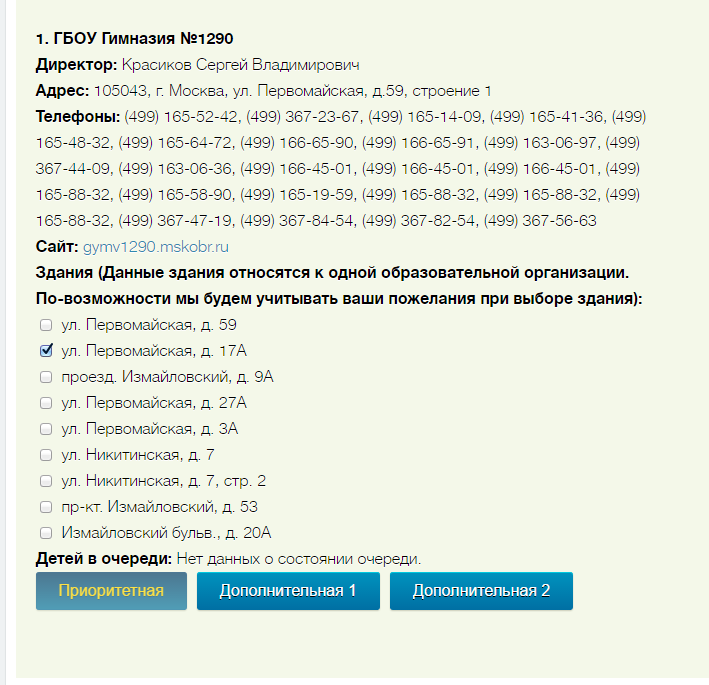 Ничего подобного. Я записалась в конкретный детсад при школе. В выборке там указано 3 очереди - приоритетная и 2 дополнительных. И вы вписываете адрес конкретного дошкольного учереждения. Я записалась только в один, по адресу прикрепления, дополнительные оставила незаполненные. И на следующий день из этого детсада пришло уведомление, чтобы я принесла документы. И номер очереди назвали именно в этот сад.
