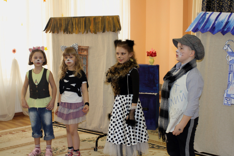 ПотрындетьС участием наших деток . Я очень благодарна нашей воспитательнице за ее труд, за отношение к детям, за полную отдачу своему делу. Детки ее очень любят. В этот раз ставили спектакль "кошкин дом" . Никто не остался без участия. Всем деткам очень подошли их роли. Доча была кошкой, вообще была на седьмом небе от счастья. Хотя если честно побаивалась. Выучим ли столько слов и не застесняется ли. Но все прошло отлично. Все умнички