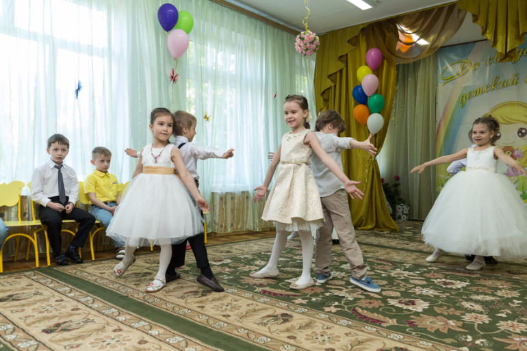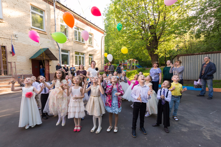 После сладкий стол, выпускание шаров и 2 часа развлечений с аниматорами.