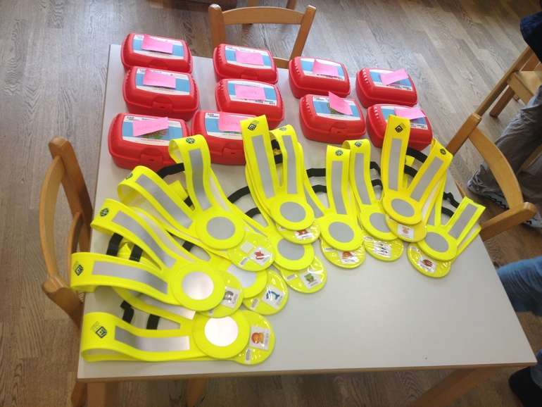 Вот такое лежало в саду для вновь прибывших. это ланч бох и штуки, одевающиеся поверх через голову... Они с отражателями.