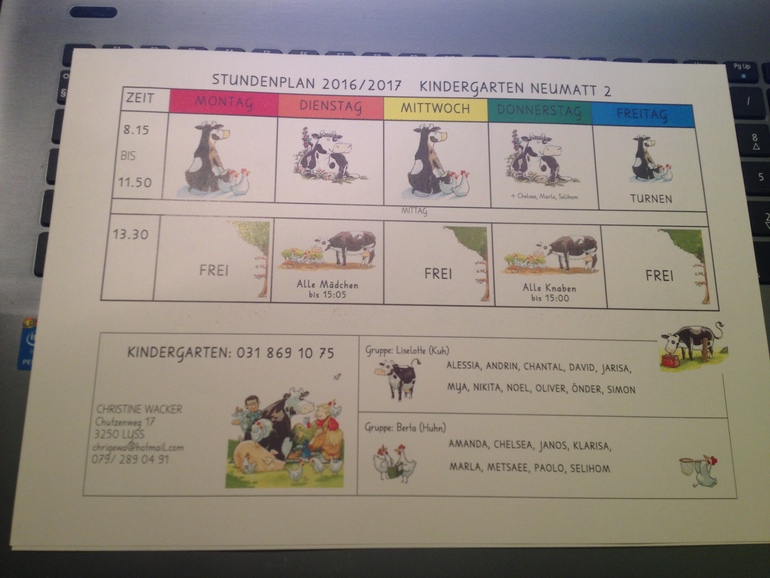 мы группа "курица Берта". Другая группа "корова Лизелотте" . ну и картинки все соответствующие...