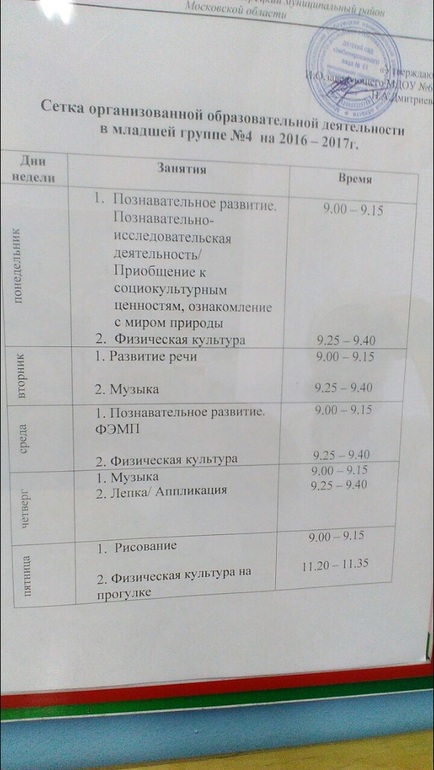 Я, правда, из Украины... Работала воспитателем в гос.садике на первой младшей группе (до 3,5 лет). У нас из платных только в средней группе английский и логопед, если есть проблемы. А из бесплатных, каждый день по расписанию 2 занятия до сна и 2 - после. Обычно это Математика + логика, Окошко в природу, Я в мире, ОБЖ, Развитие речи с элементами эйдетики, Литература, Физкультура, Музыка и танцы, Творчество (рисование, лепка или аппликация), конструирование/ролевая игра, Развитие мелкой моторики.
